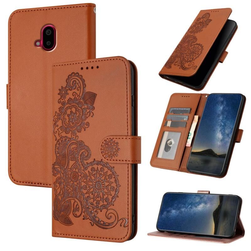 For Fujitsu Arrows F-52B Datura Flower Embossed Flip Leather Phone Case(Brown)