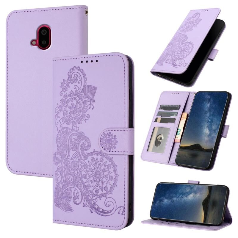 For Fujitsu Arrows F-52B Datura Flower Embossed Flip Leather Phone Case(Purple)