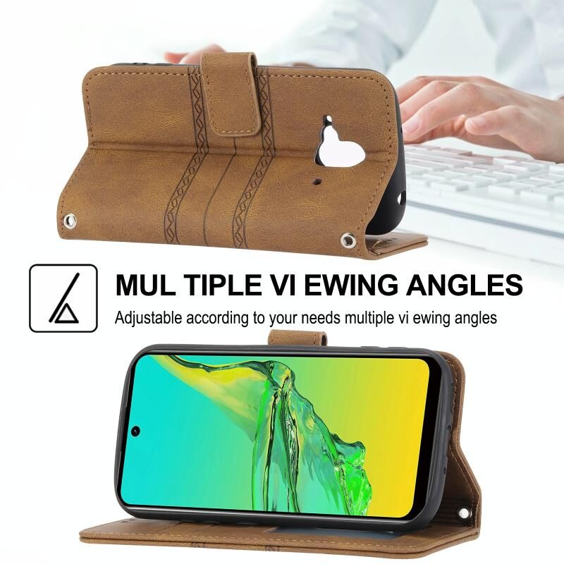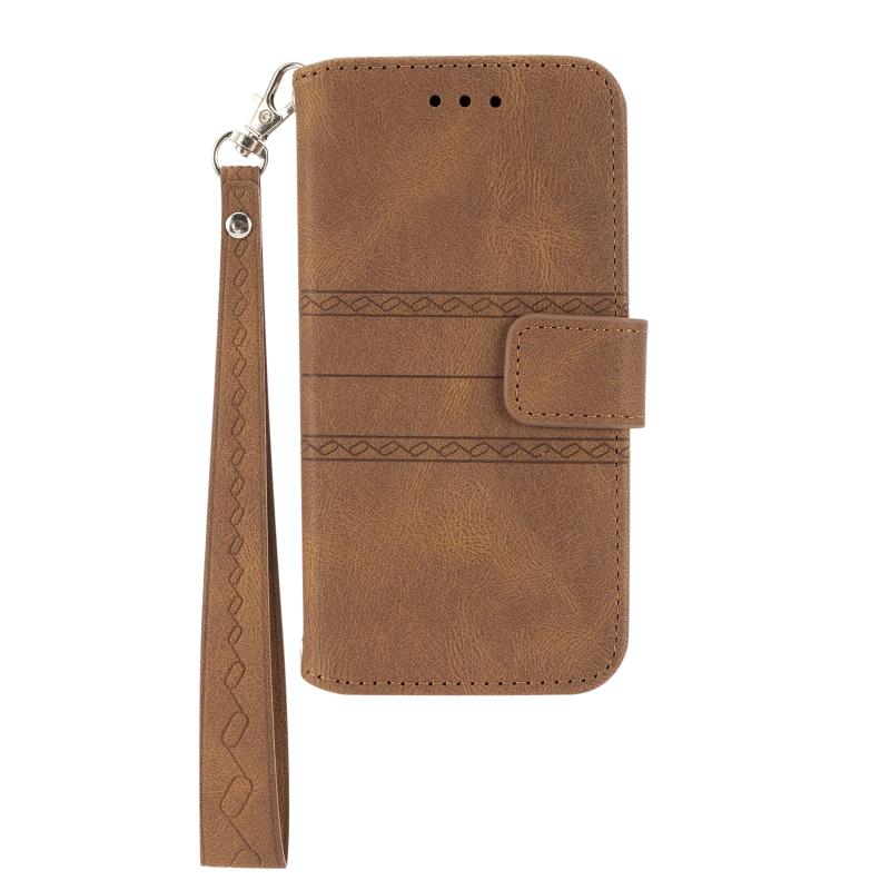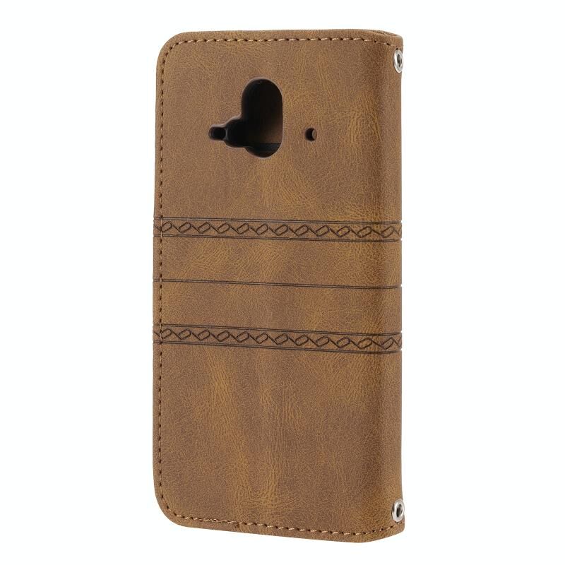 For Fujitsu Arrows F-52B Embossed Striped Magnetic Buckle Horizontal Flip Phone Leather Case(Brown)