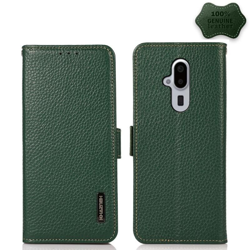 Θήκη τηλεφώνου με μαγνητική πλευρά, γνήσιο δέρμα Litchi KHAZNEH για Fujitsu Arrows F-52B (πράσινο)