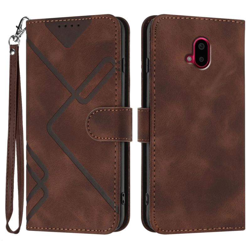 For Fujitsu Arrows F-52B Line Pattern Skin Feel Leather Phone Case(Coffee)