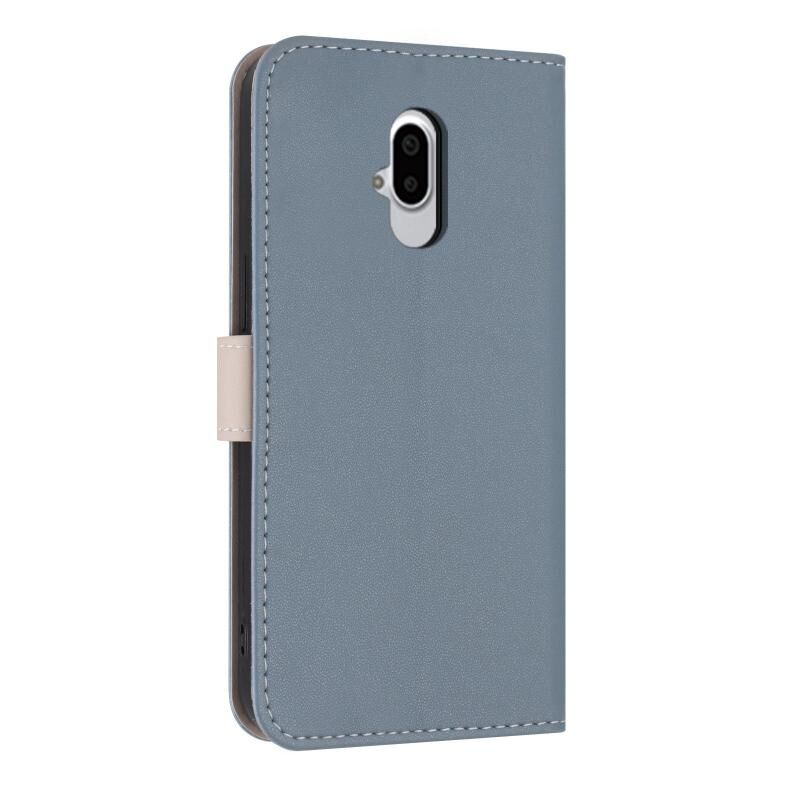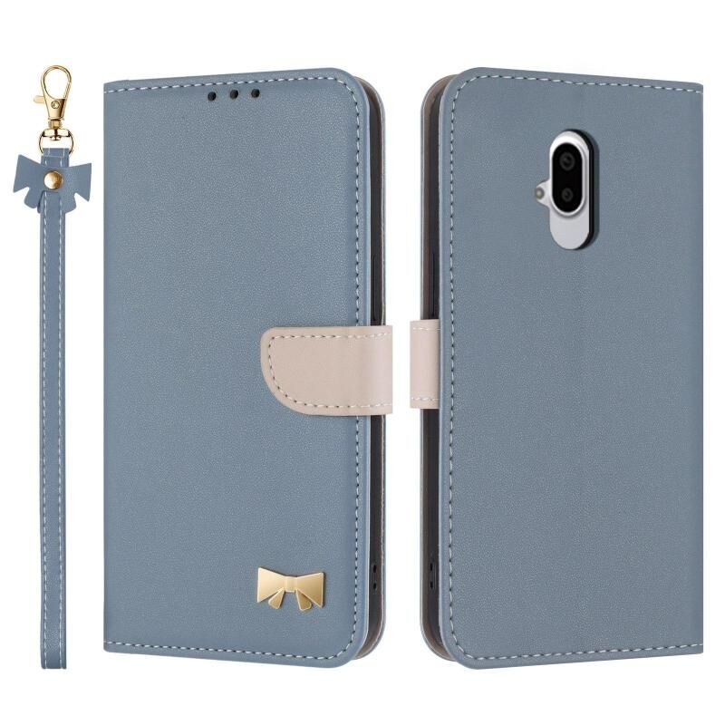For Fujitsu Arrows F-52B Metal Bow Leather Phone Case with Hand Strap(Light Blue)