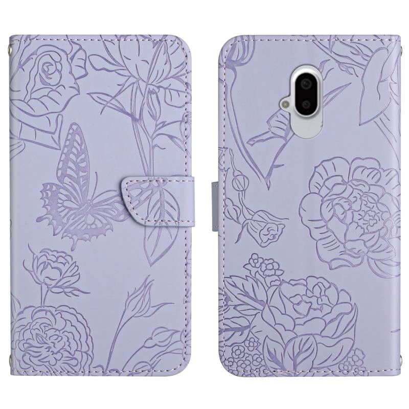 For Fujitsu Arrows F-52B Skin Feel Butterfly Peony Embossed Leather Phone Case(Purple)