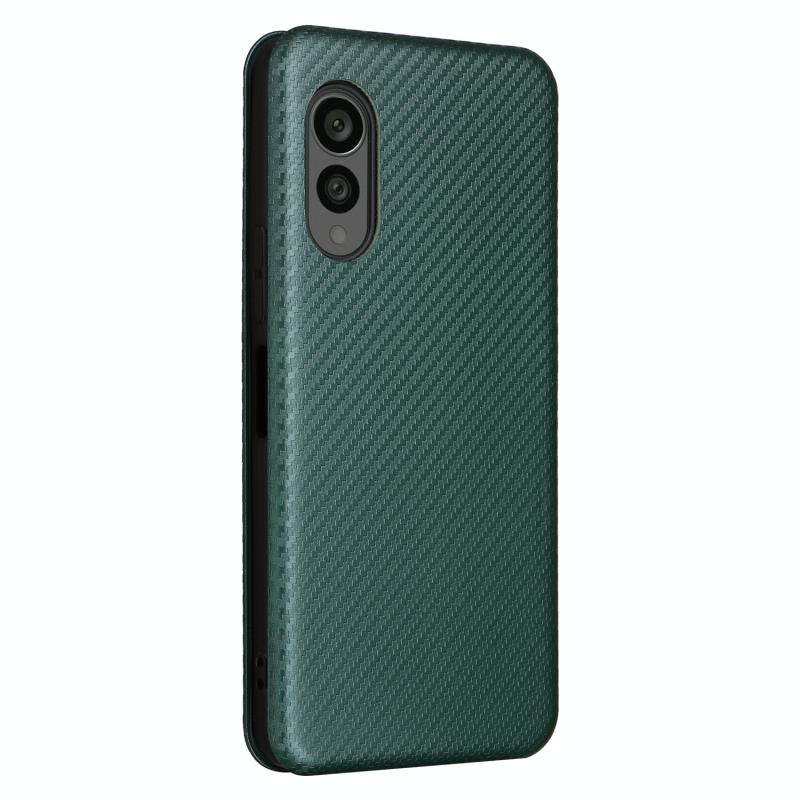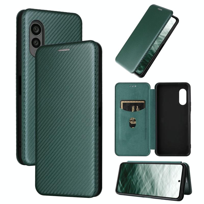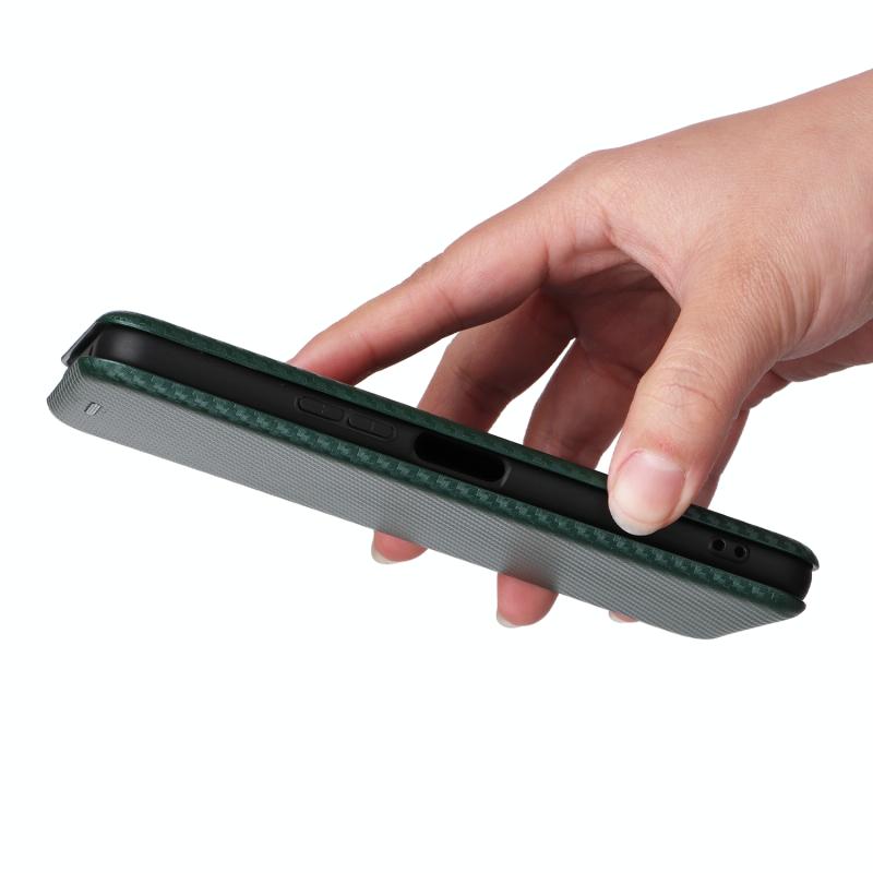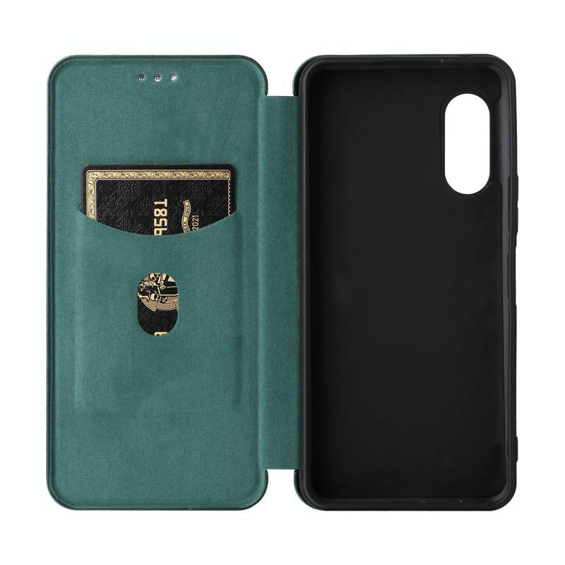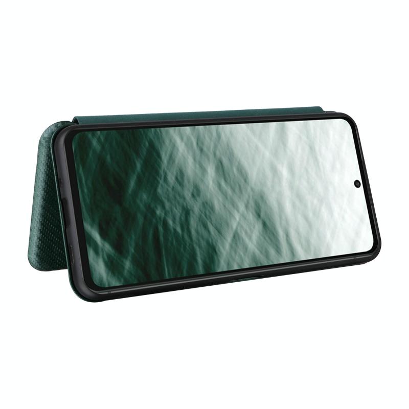 Θήκη τηλεφώνου από δέρμα με υφή ανθρακονήματος για Fujitsu Arrows N F-51C (πράσινο)