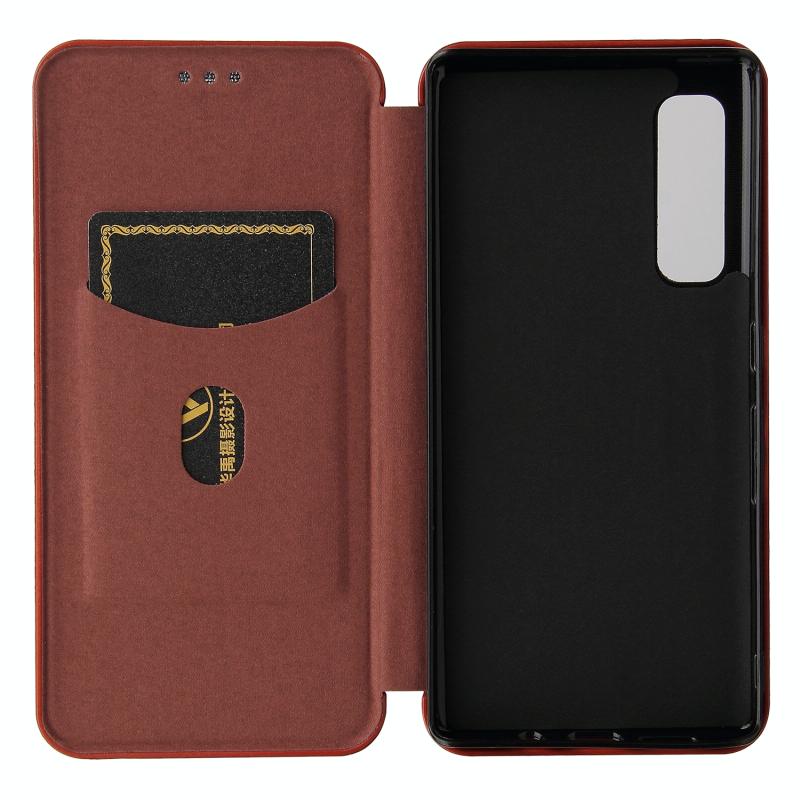 For Fujitsu Arrows NX9 F-52A Carbon Fiber Texture Horizontal Flip TPU + PC + PU Leather Case with Card Slot(Brown)