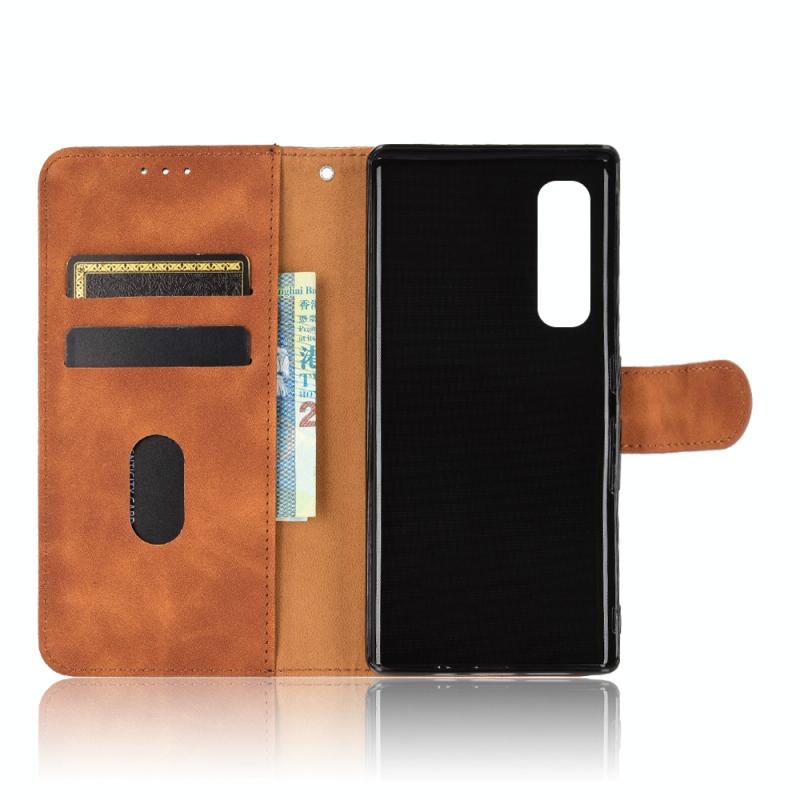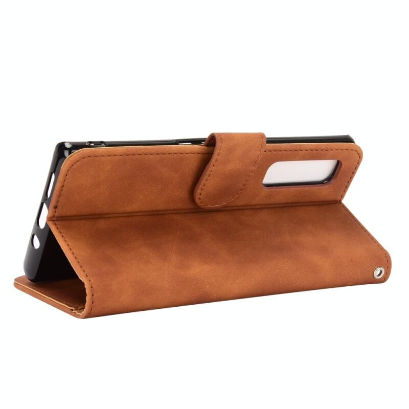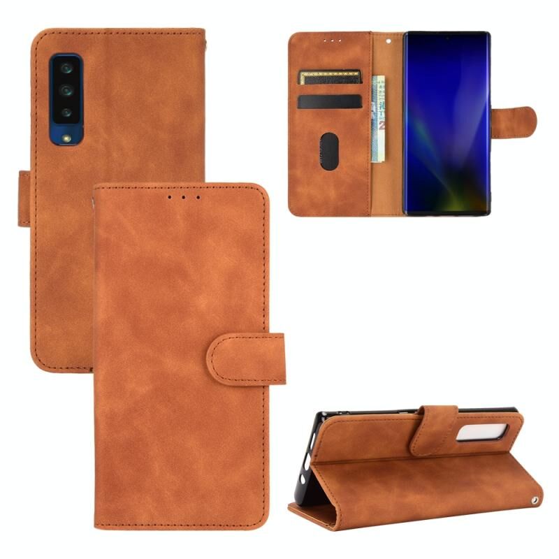 For Fujitsu Arrows NX9 F-52A Solid Color Skin Feel Magnetic Buckle Horizontal Flip Calf Texture PU Leather Case with Holder & Card Slots & Wallet(Brown)