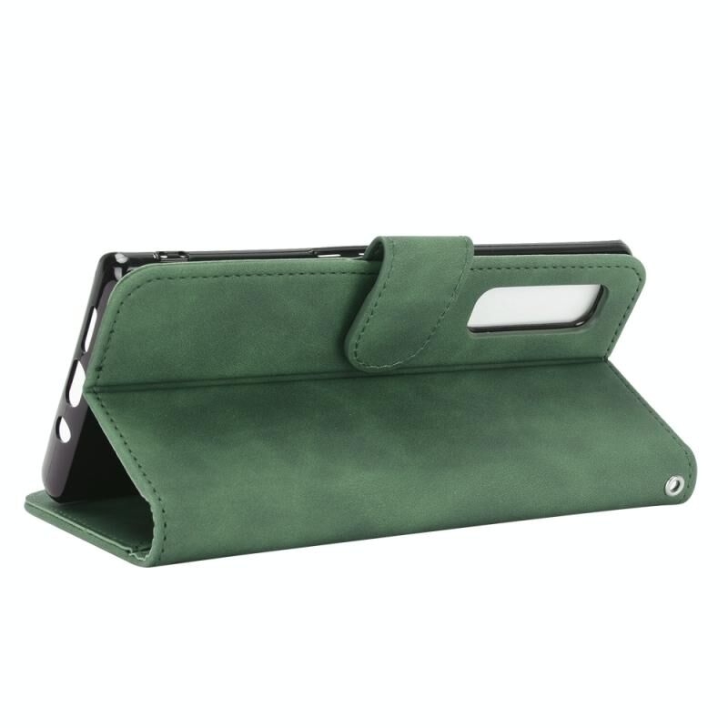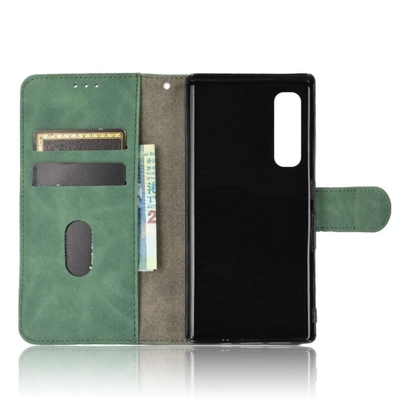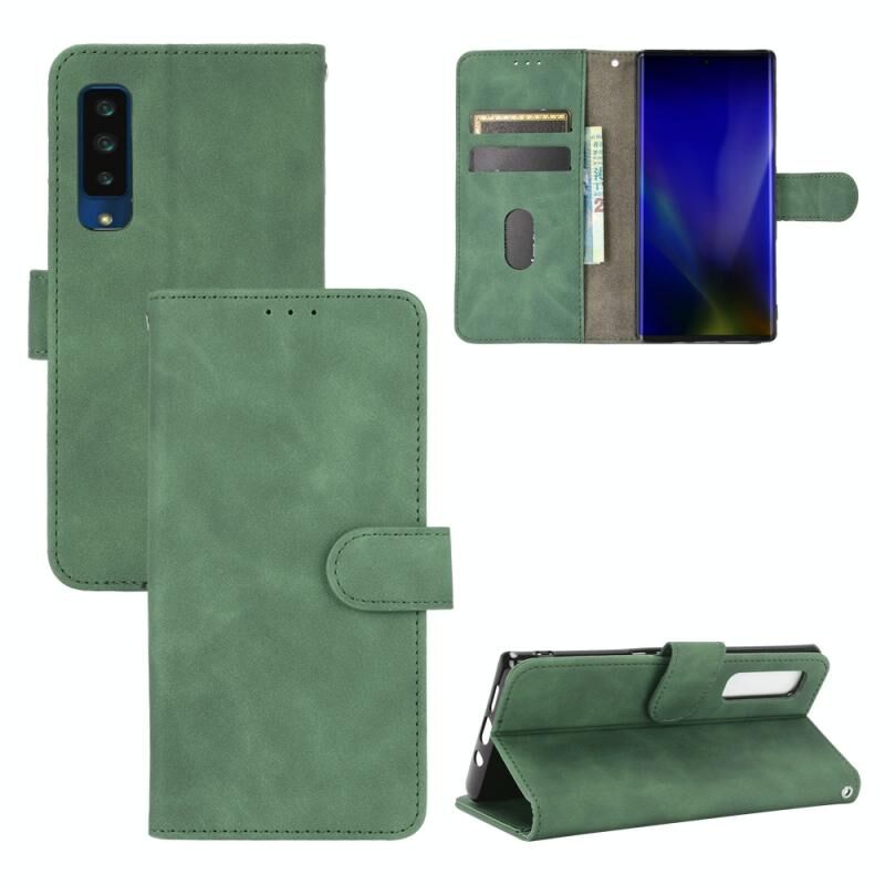 For Fujitsu Arrows NX9 F-52A Solid Color Skin Feel Magnetic Buckle Horizontal Flip Calf Texture PU Leather Case with Holder & Card Slots & Wallet(Green)