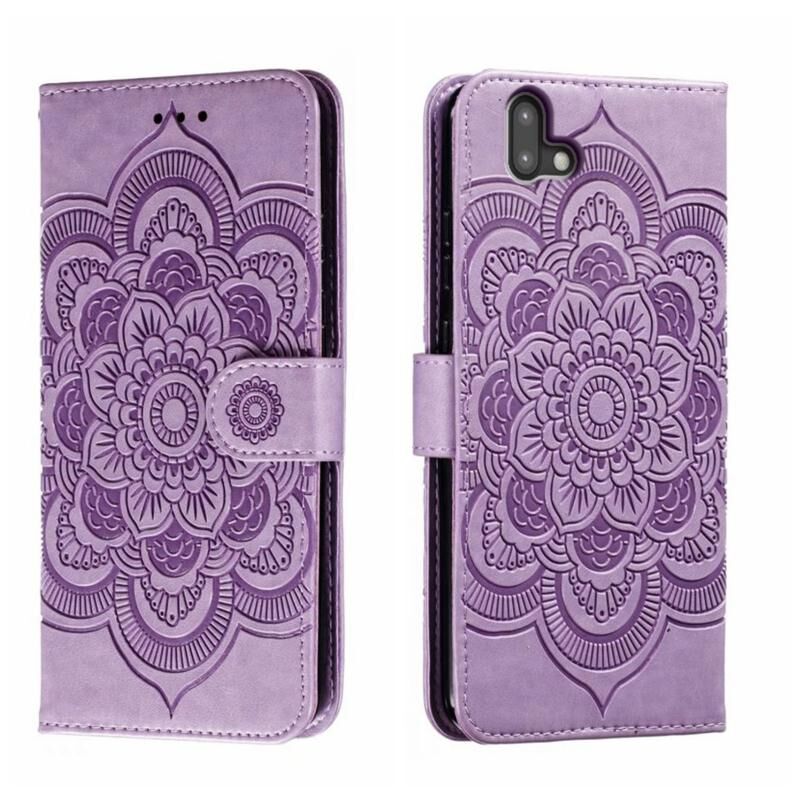 Για Fujitsu βέλη U Sun Mandala ανάγλυφο μοτίβο τηλέφωνο δερμάτινη θήκη (Μωβ)