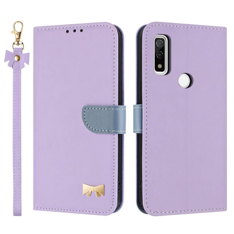 For Fujitsu Arrows WE F-51B / BZ03 Metal Bow Leather Phone Case with Hand Strap(Purple)