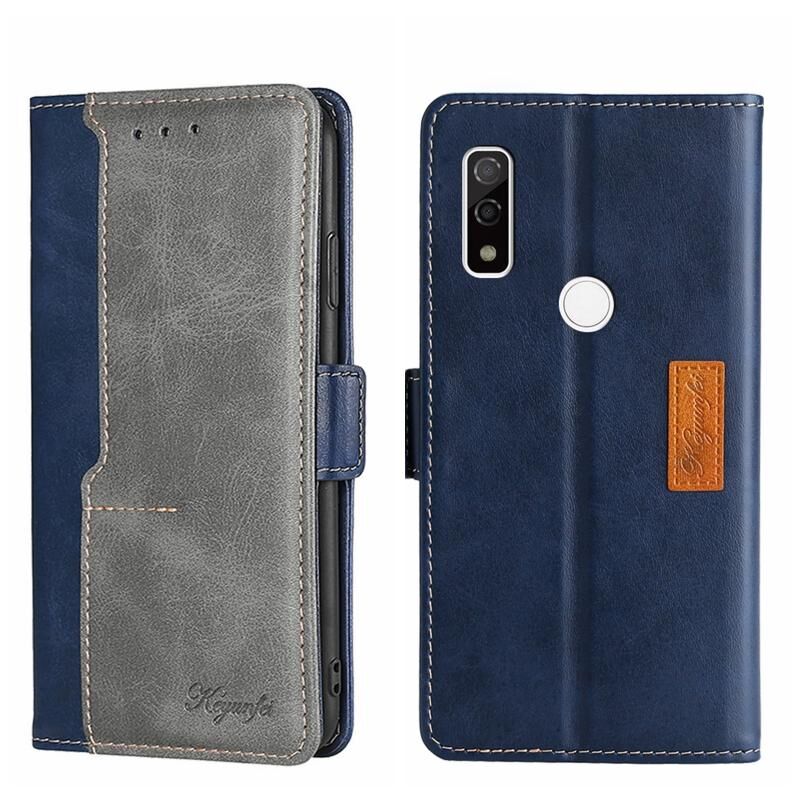 Για Fujitsu ARROWS WE F-51B Αντίθετο χρώμα πλευρά πόρπη δερμάτινη θήκη τηλεφώνου (μπλε + γκρι)