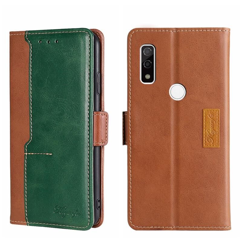 Για Fujitsu ARROWS WE F-51B Αντίθετο χρώμα πλευρά πόρπη δερμάτινη θήκη τηλεφώνου (ανοιχτό καφέ + πράσινο)