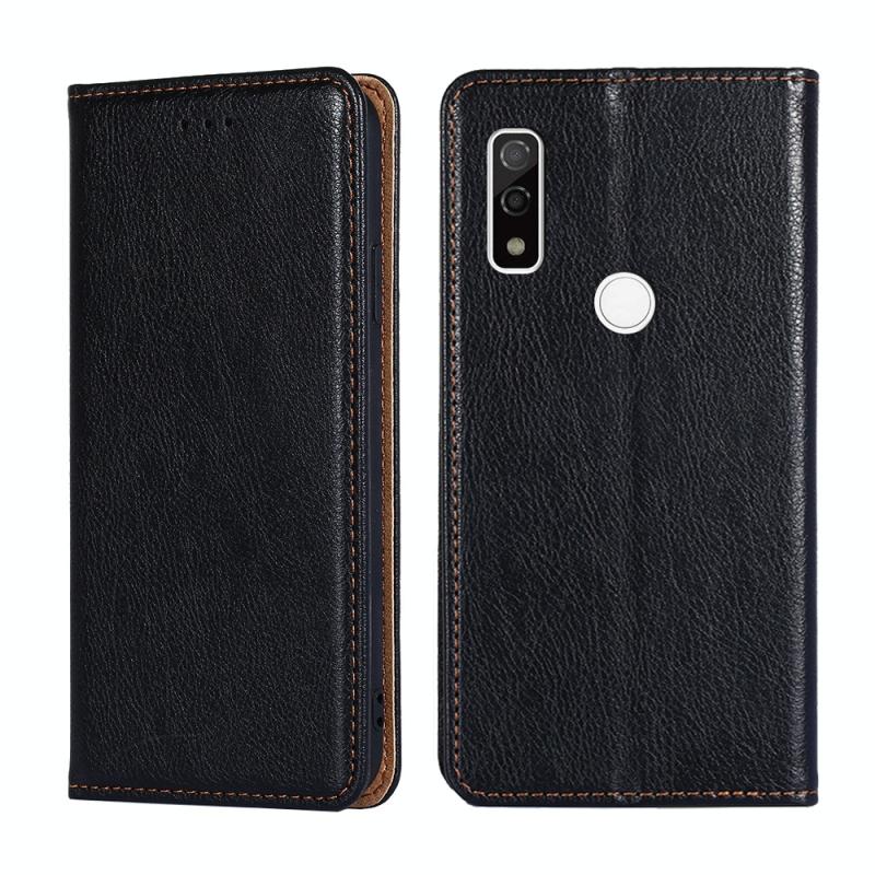 Θήκη τηλεφώνου από μαγνητικό δέρμα με γυαλιστερό λάδι και συμπαγή χρώματα για Fujitsu Arrows WE F-51B (Μαύρο)