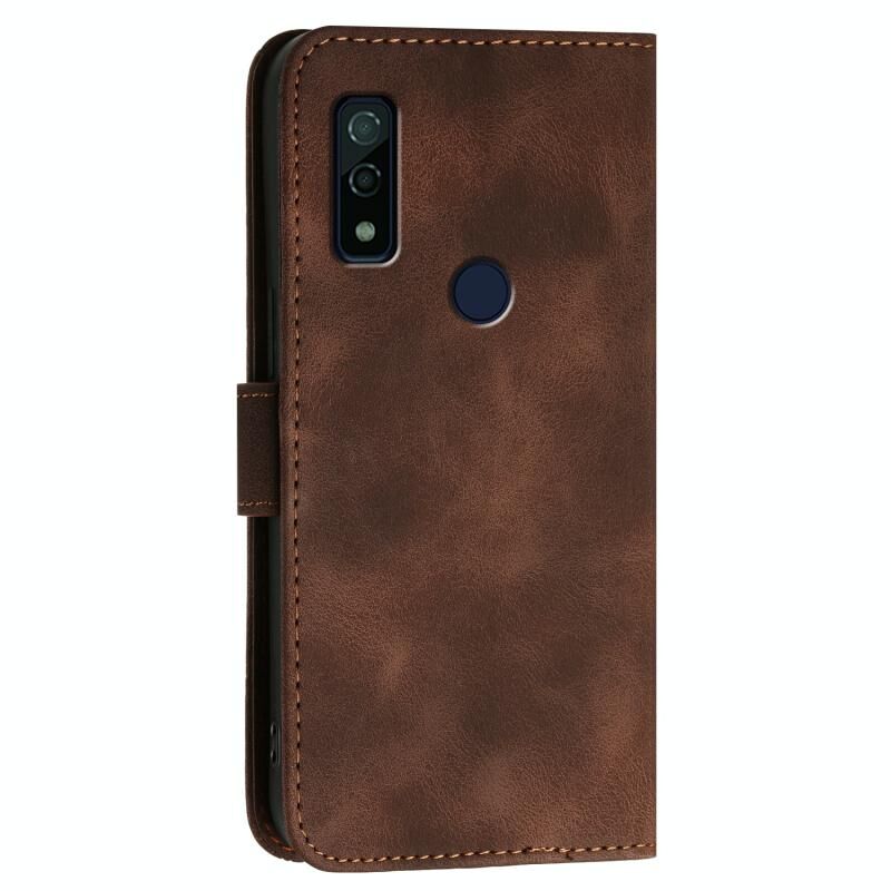 Θήκη τηλεφώνου από δέρμα με σχέδιο ανάγλυφου πλέγματος πεταλούδας για Fujitsu Arrows We F-51B με κορδόνι (Καφέ)