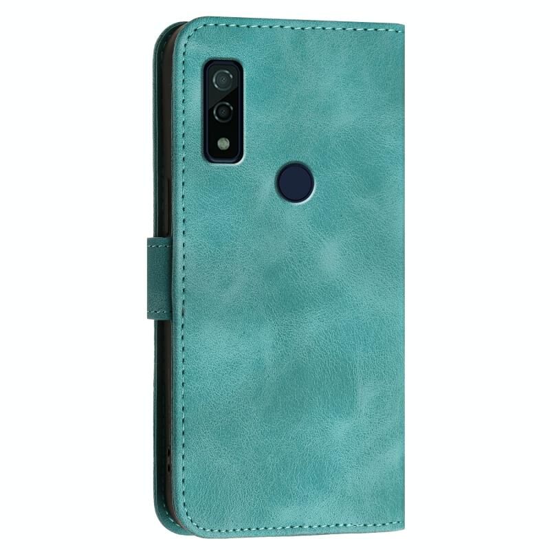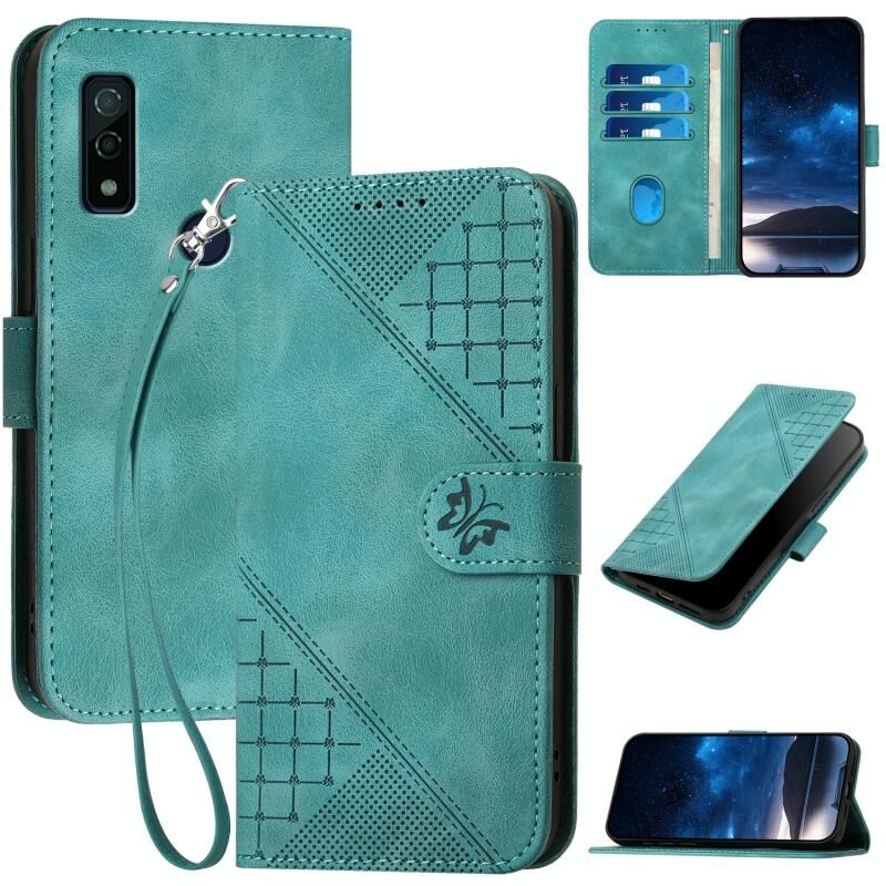 Θήκη τηλεφώνου από δέρμα με σχέδιο ανάγλυφου Grid Butterfly για Fujitsu Arrows We F-51B, με λουρί (Σκούρο Μπλε)