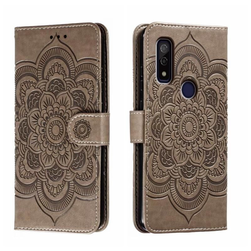 Για Fujitsu Arrows We F-51B Sun Mandala ανάγλυφο μοτίβο τηλέφωνο δερμάτινη θήκη (γκρι)