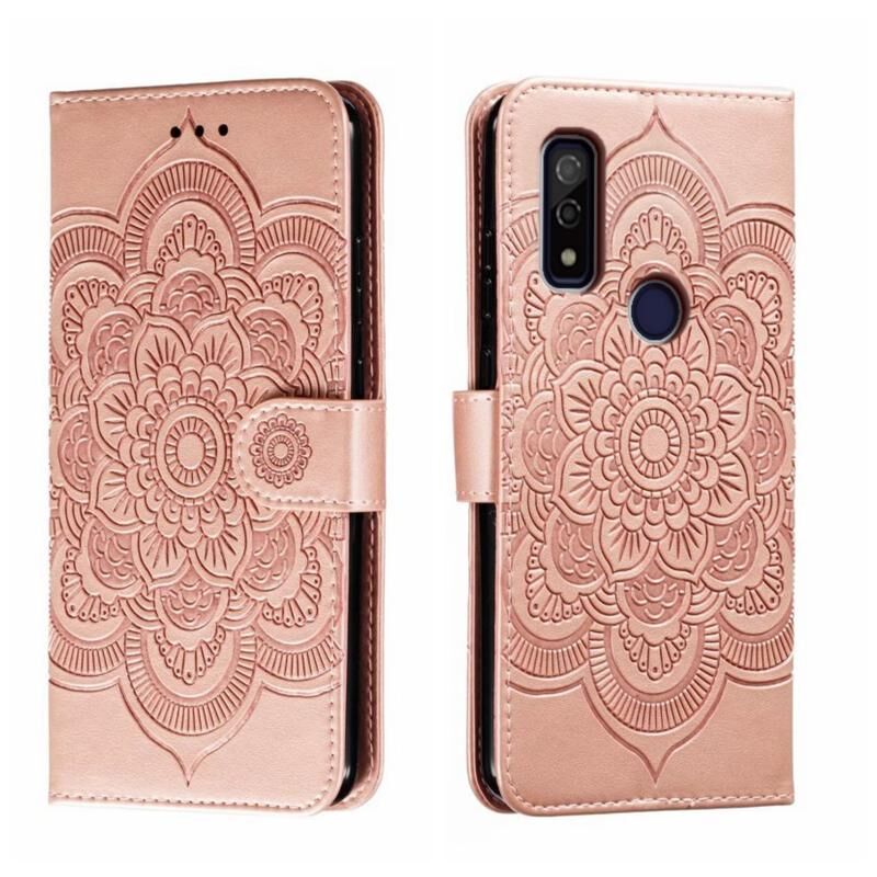 Για Fujitsu βέλη Εμείς F-51B Sun Mandala ανάγλυφο μοτίβο τηλέφωνο δερμάτινη θήκη (Rose Gold)