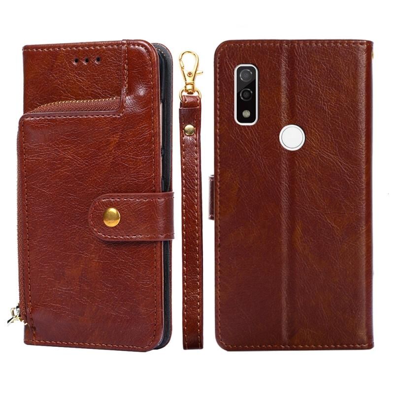 Για Fujitsu ARROWS WE/F-51B φερμουάρ τσάντα δερμάτινη θήκη τηλεφώνου (καφέ)