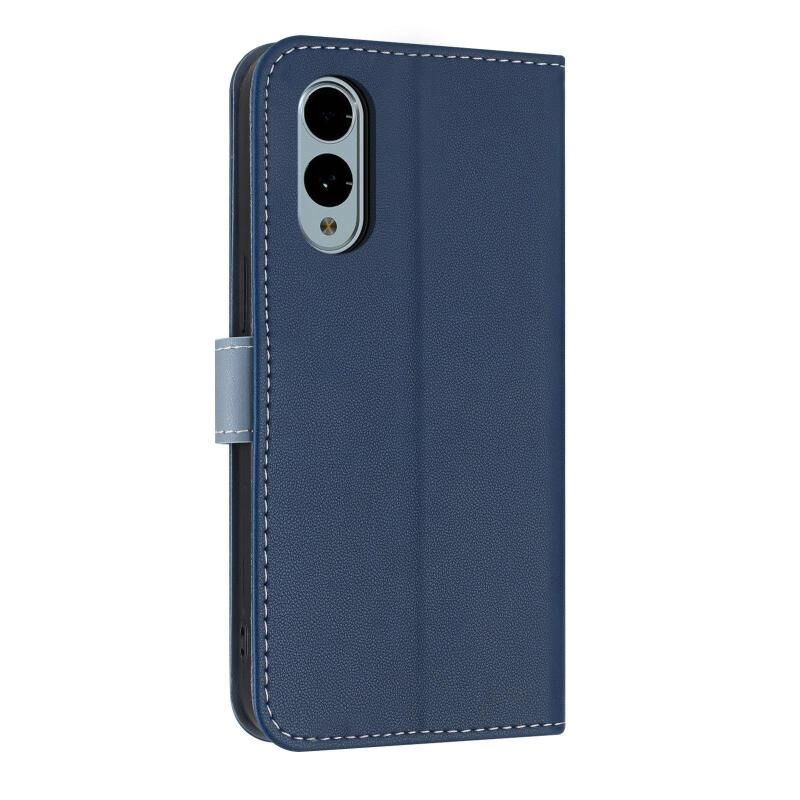 For Fujitsu Arrows We2 F-52E Metal Bow Leather Phone Case with Hand Strap(Dark Blue)
