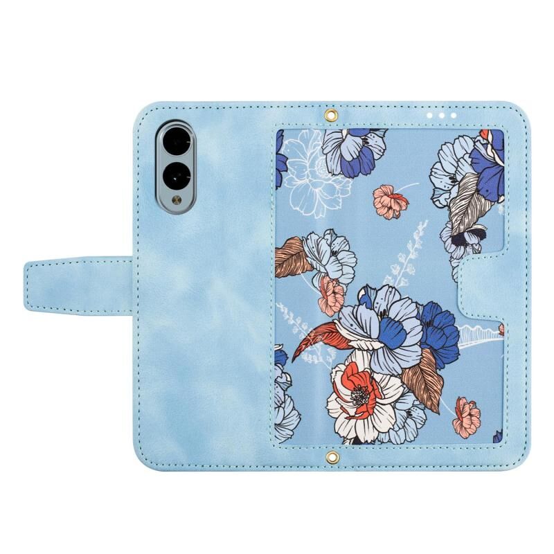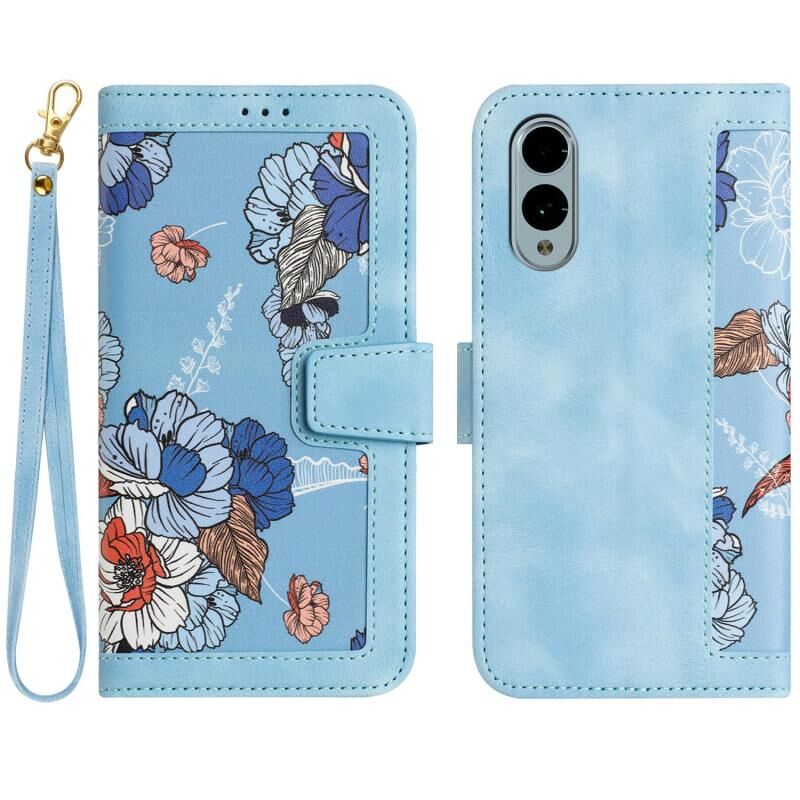 Θήκη τηλεφώνου δερμάτινη με λουλουδάτο σχέδιο για Fujitsu Arrows We2 με κορδόνι (Ανοιχτό μπλε)