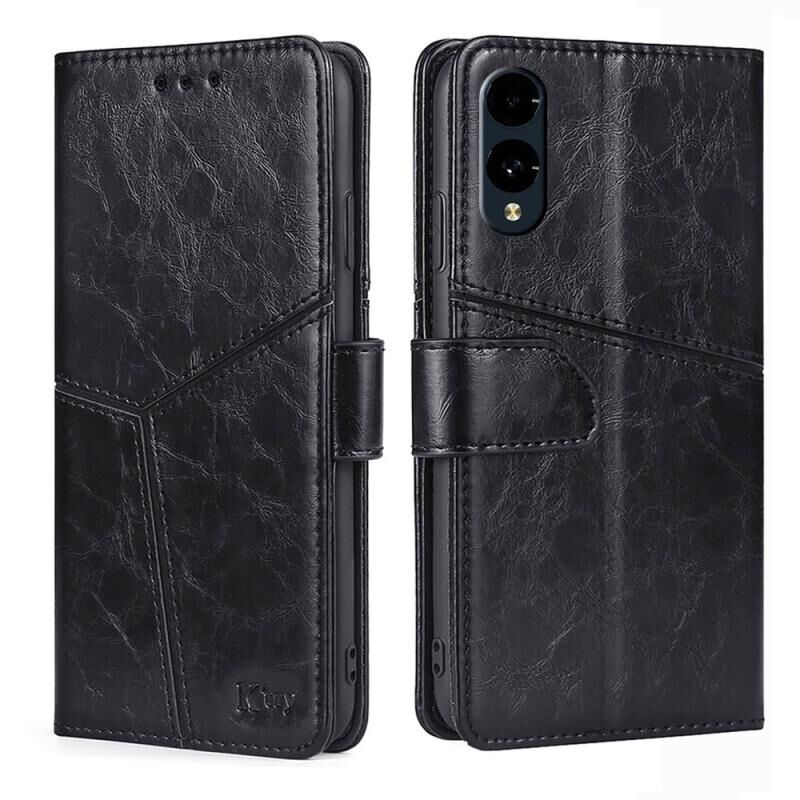 Για Fujitsu βέλη We2 γεωμετρική ραφή δερμάτινη θήκη τηλεφώνου (μαύρο)