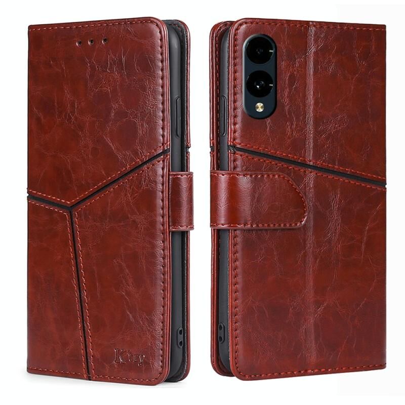 Για Fujitsu βέλη We2 γεωμετρική ραφή δερμάτινη θήκη τηλεφώνου (σκούρο καφέ)