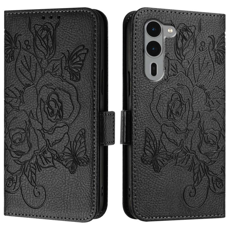 Για Fujitsu βέλη We2 Plus ανάγλυφο Rose RFID Anti-theft δερμάτινη θήκη τηλεφώνου (Μαύρο)