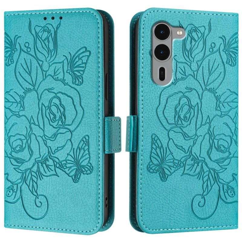 Για Fujitsu βέλη We2 Plus ανάγλυφο Rose RFID Anti-theft δερμάτινη θήκη τηλεφώνου (γαλάζιο)