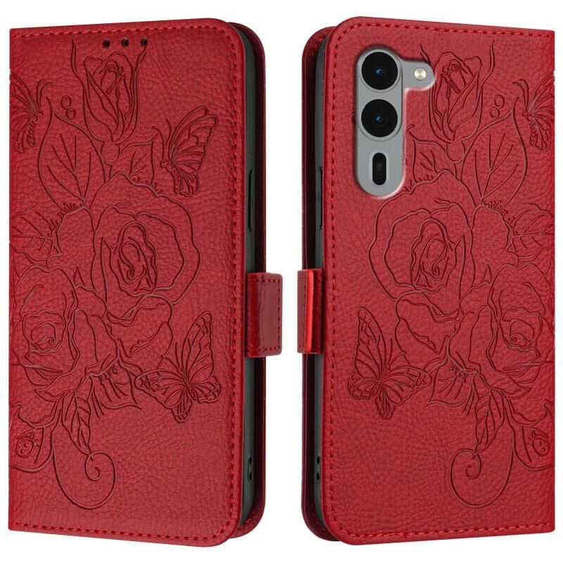 Για Fujitsu βέλη We2 Plus ανάγλυφο Rose RFID Anti-theft δερμάτινη θήκη τηλεφώνου (κόκκινο)