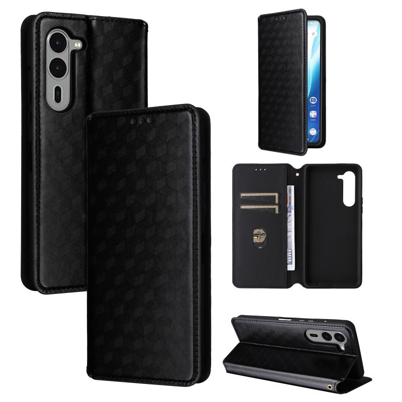 For Fujitsu Arrows We2 Plus F-51E Cubic Grid Texture Flip Leather Phone Case(Black)