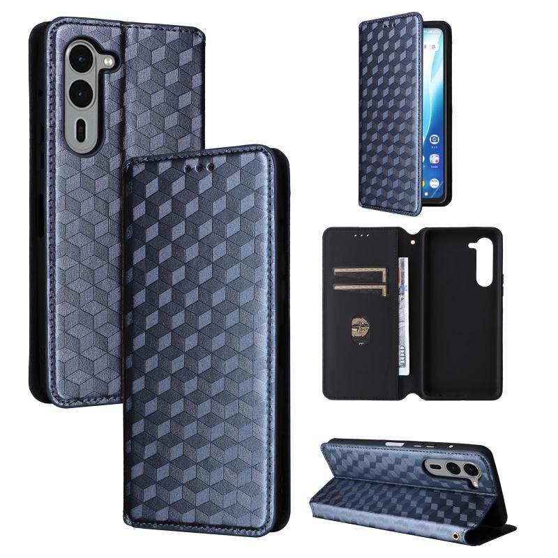 For Fujitsu Arrows We2 Plus F-51E Cubic Grid Texture Flip Leather Phone Case(Blue)