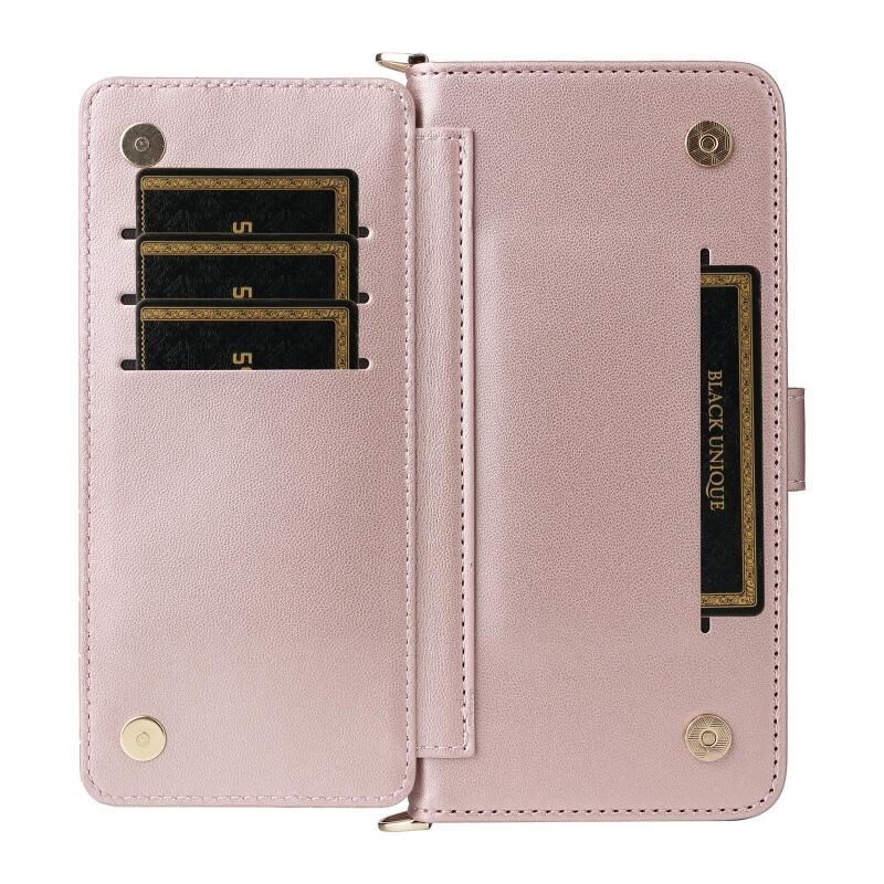 Θήκη τηλεφώνου από δέρμα για Fujitsu Arrows We2 Plus F-51E, Πολυλειτουργική με 6 Θήκες Καρτών και Λουρί Καρπού (Ροζ)