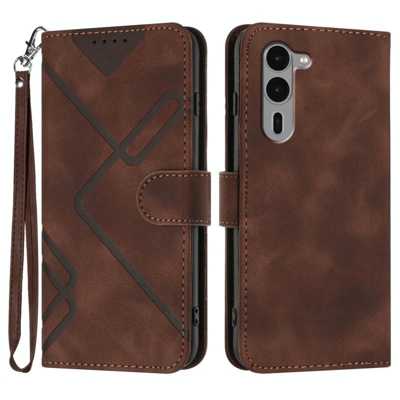 For Fujitsu Arrows We2 Plus Line Pattern Skin Feel Leather Phone Case(Coffee)