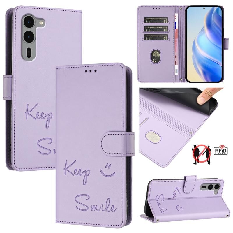 Για Fujitsu βέλη We2 Plus χαμόγελο ανάγλυφο RFID δερμάτινη θήκη τηλεφώνου (Light Purple)