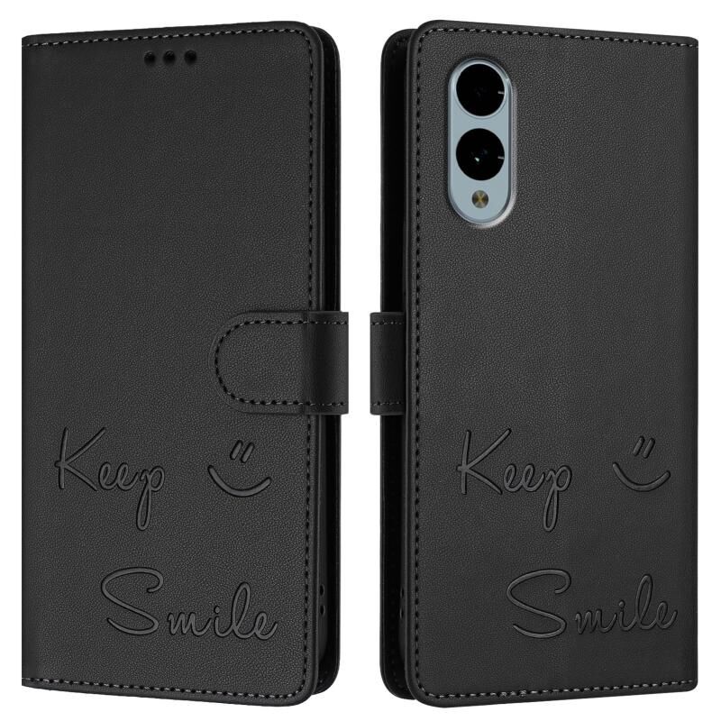 Για Fujitsu βέλη We2 χαμόγελο ανάγλυφο RFID δερμάτινη θήκη τηλεφώνου (Μαύρο)