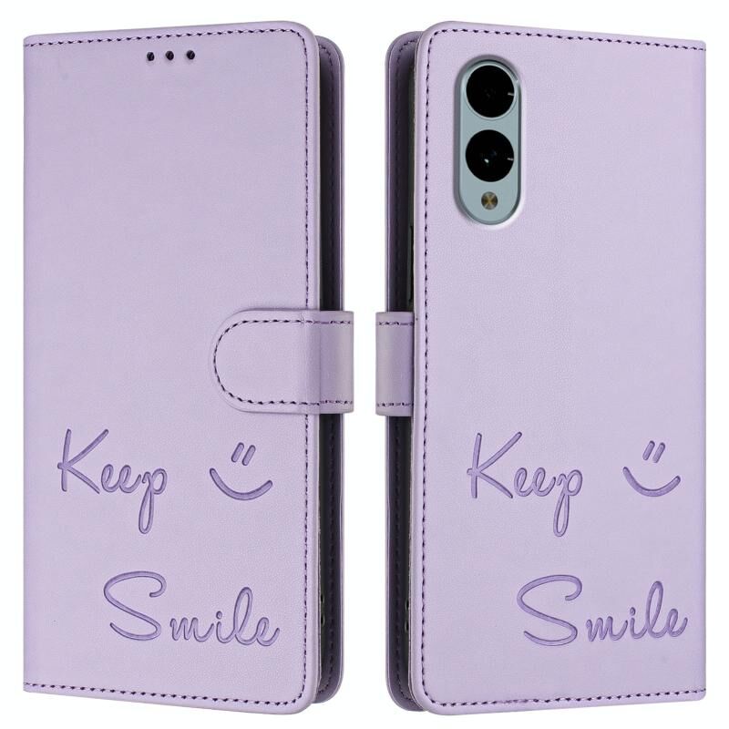 Για Fujitsu βέλη We2 Χαμόγελο ανάγλυφο RFID δερμάτινη θήκη τηλεφώνου (Light Purple)