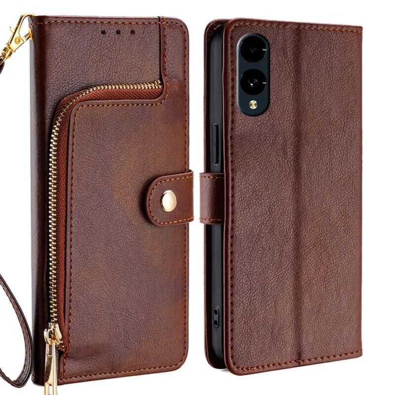Για Fujitsu βέλη We2 φερμουάρ τσάντα δερμάτινη θήκη τηλεφώνου (καφέ)