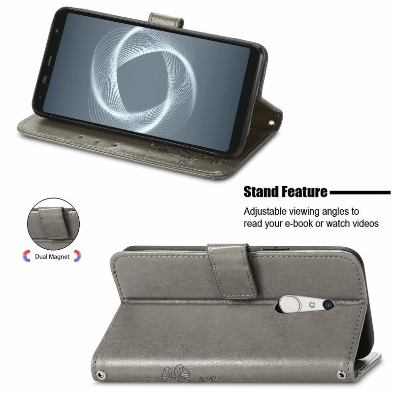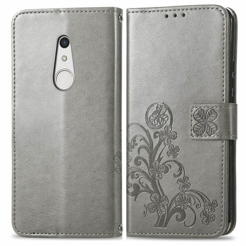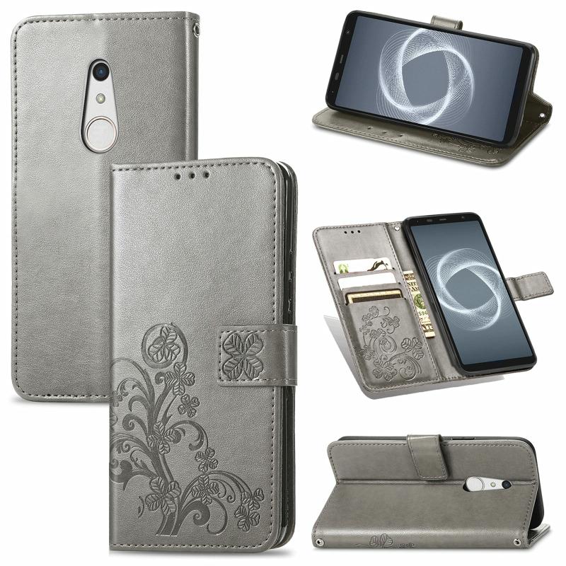For FUJITSU F-41B Four-leaf Clasp Embossed Buckle Mobile Phone Protection Leather Case with Lanyard & Card Slot & Wallet & Bracket Function(Gray)