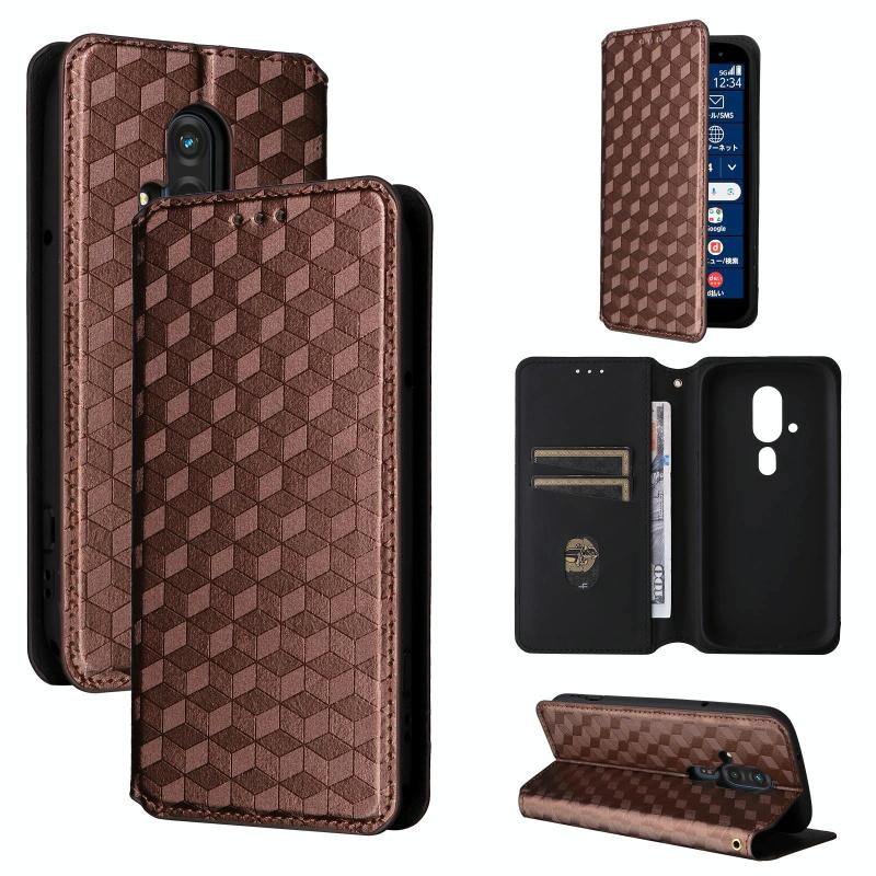 For Fujitsu FCNT Rakuraku F-53E Cubic Grid Texture Flip Leather Phone Case(Brown)