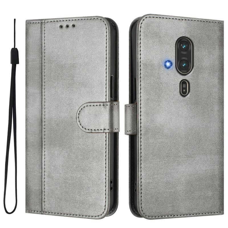 Θήκη τηλεφώνου από δέρμα retro για Fujitsu FCNT Rakuraku F-53E με αγκράφα ένωσης γραμμών (Μαύρο)