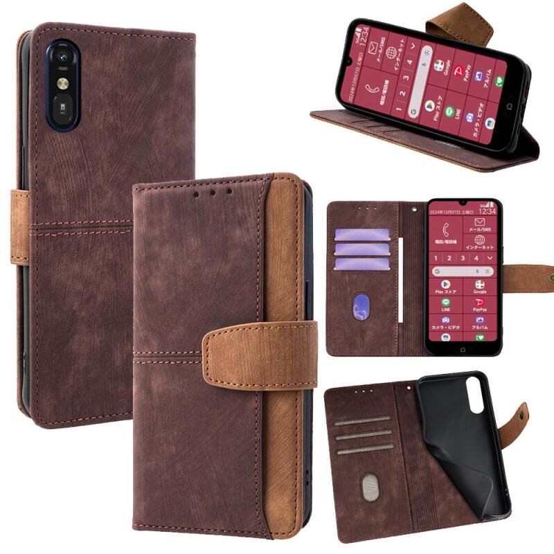 For Fujitsu RakuRaku A401FC Color Stitching Skin Feel Leather RFID Blocking Phone Case(Brown)