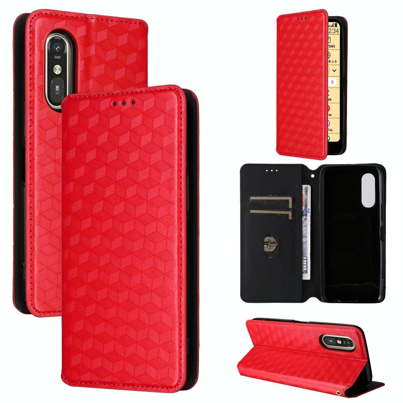 For Fujitsu Rakuraku A401FC Cubic Grid Texture Flip Leather Phone Case(Red)