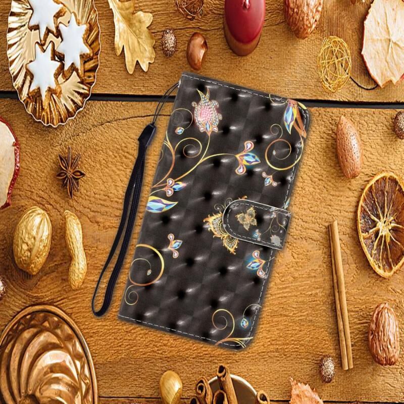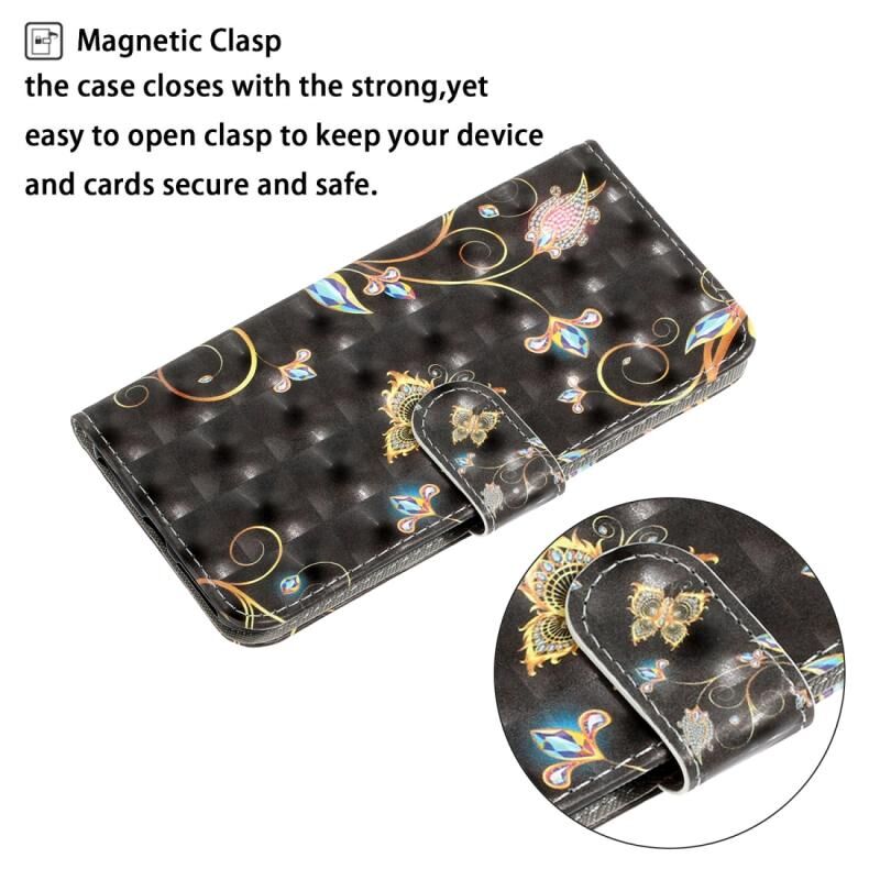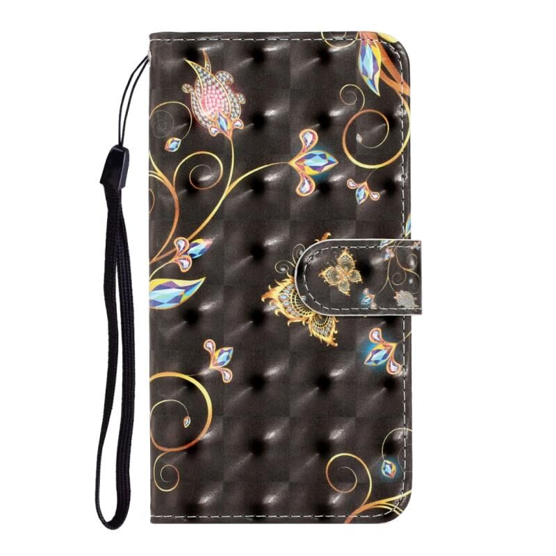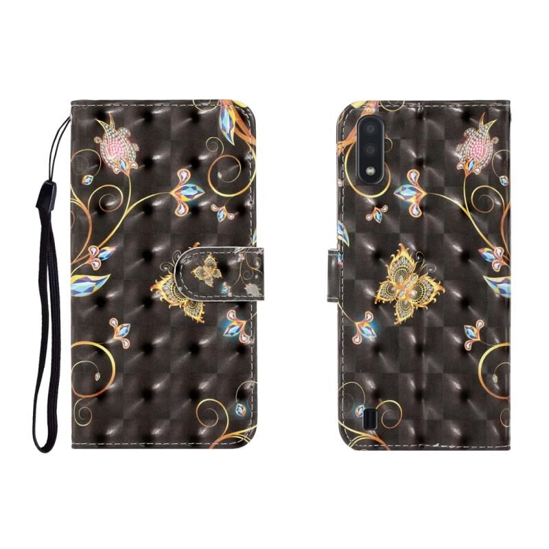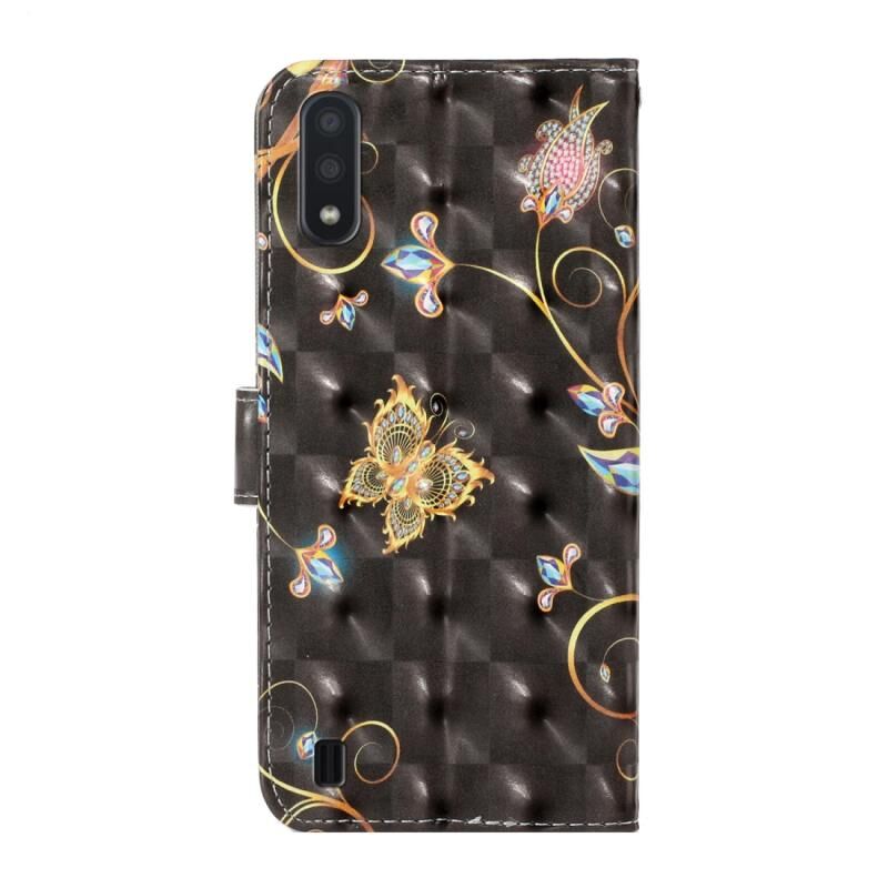 Θήκη δέρματος οριζόντιας αναδίπλωσης 3D με έγχρωμο σχέδιο για Galaxy A01 με βάση & υποδοχή κάρτας & πορτοφόλι (Χρυσή Πεταλούδα)