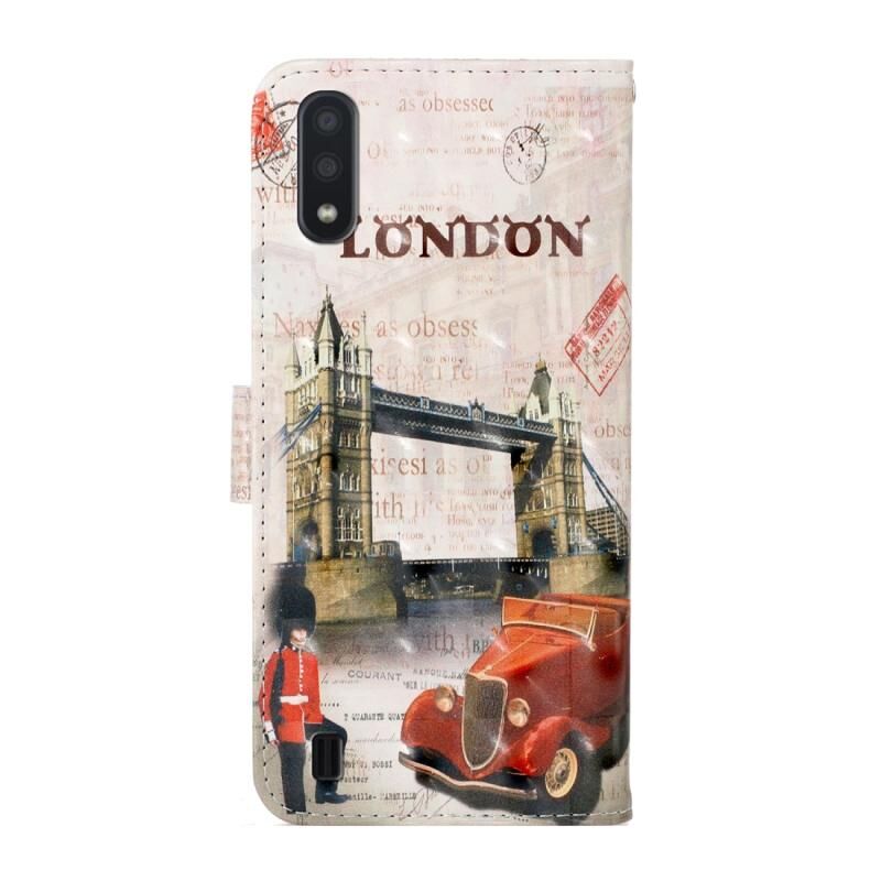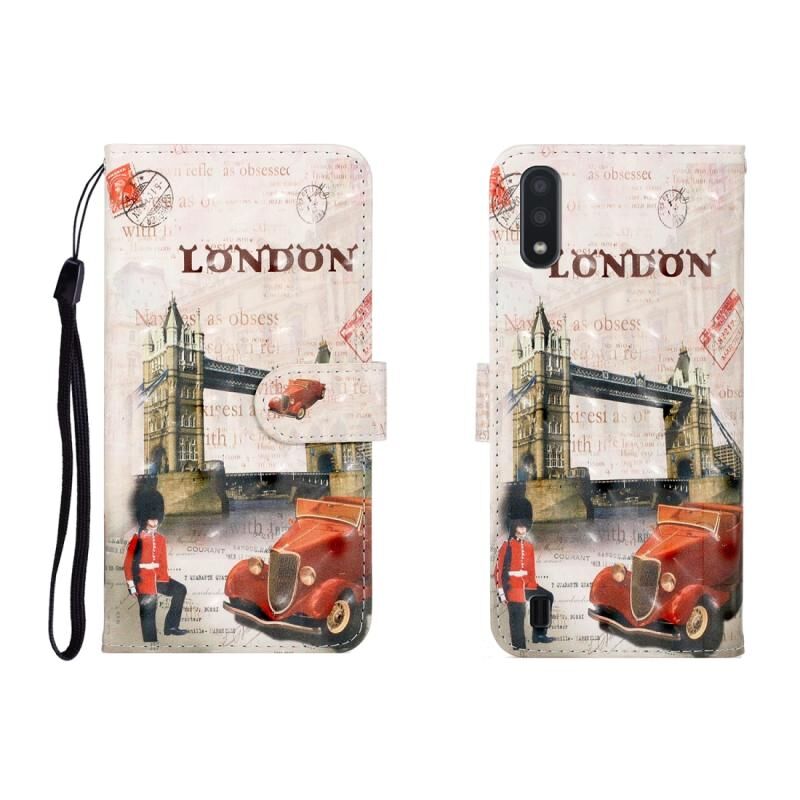 Θήκη δέρματος οριζόντιας αναδίπλωσης 3D με σχέδιο και χρώματα για Galaxy A01 με βάση στήριξης & υποδοχή κάρτας & πορτοφόλι (Πύργος Αυτοκινήτου)