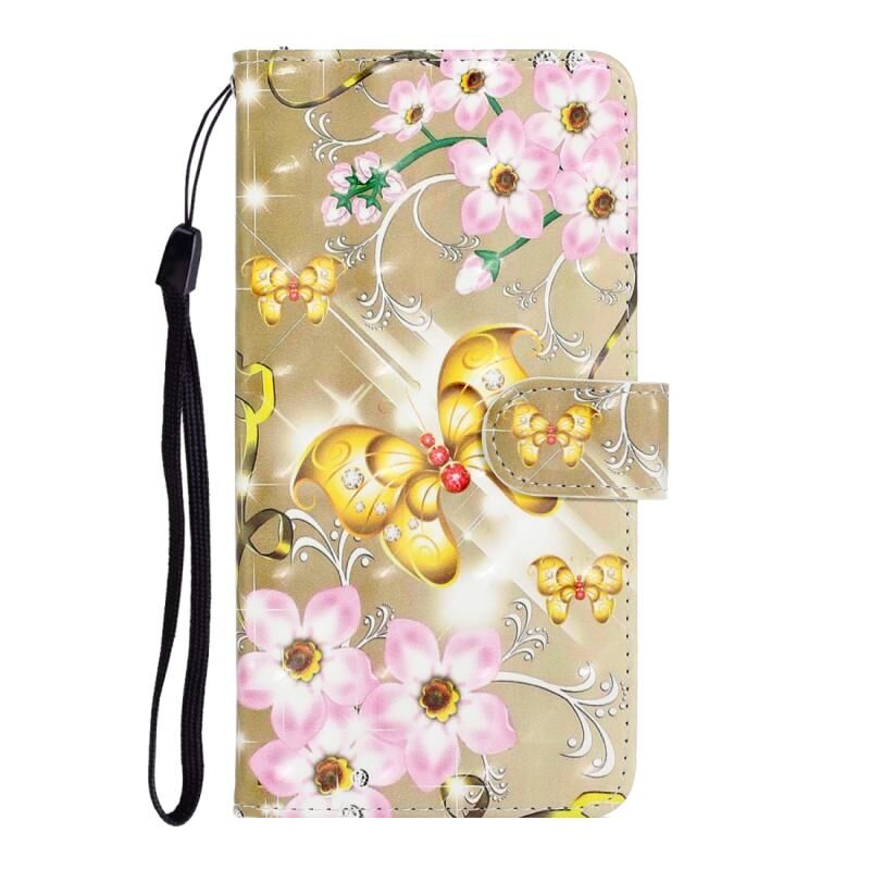 Θήκη δέρματος οριζόντιας αναδίπλωσης 3D με έγχρωμο σχέδιο για Galaxy A01 με βάση & υποδοχή κάρτας & πορτοφόλι (Χρυσή Πεταλούδα)