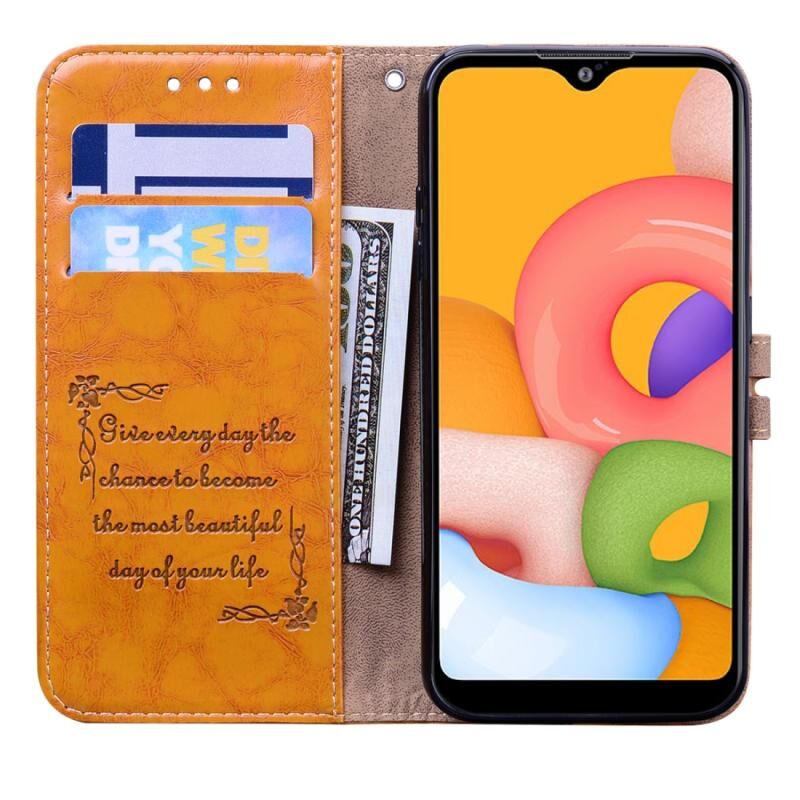 Για Galaxy A01 Business Style Oil Wax Texture Horizontal Flip Leather Case, με θήκη & υποδοχές για κάρτες & πορτοφόλι (καφέ)