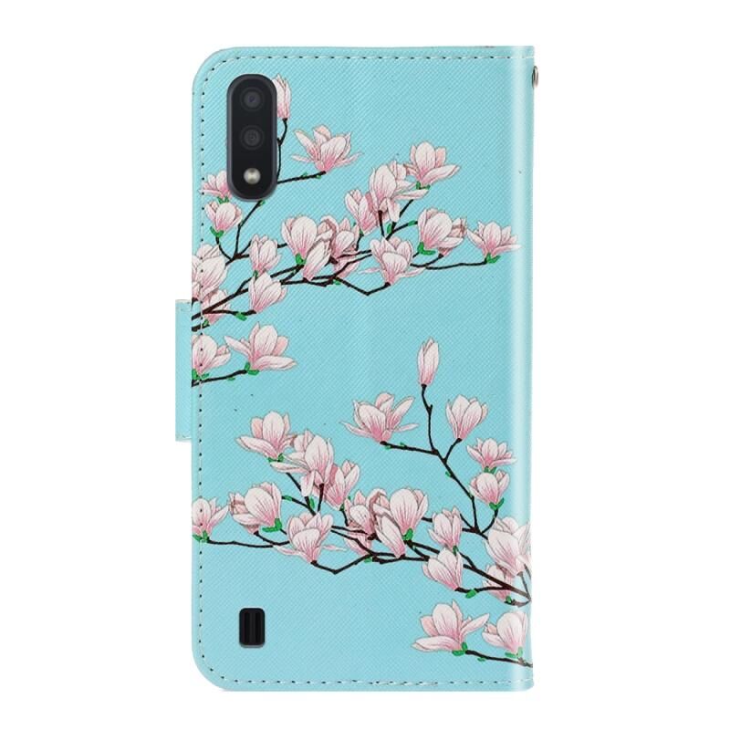 Θήκη δέρματος οριζόντιας αναδίπλωσης με βάση & υποδοχή κάρτας & πορτοφόλι για Galaxy A01 (Μαγνολία)