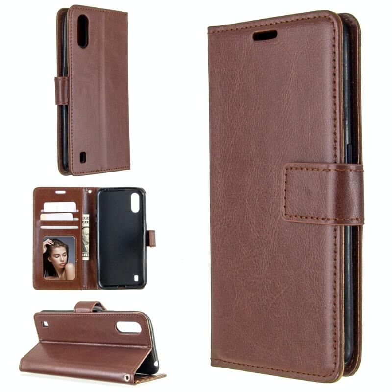 Για Galaxy A01 Crazy Horse Υφή οριζόντια Flip δερμάτινη θήκη με θήκη & υποδοχές για κάρτες & πορτοφόλι & κορνίζα φωτογραφιών (καφέ)