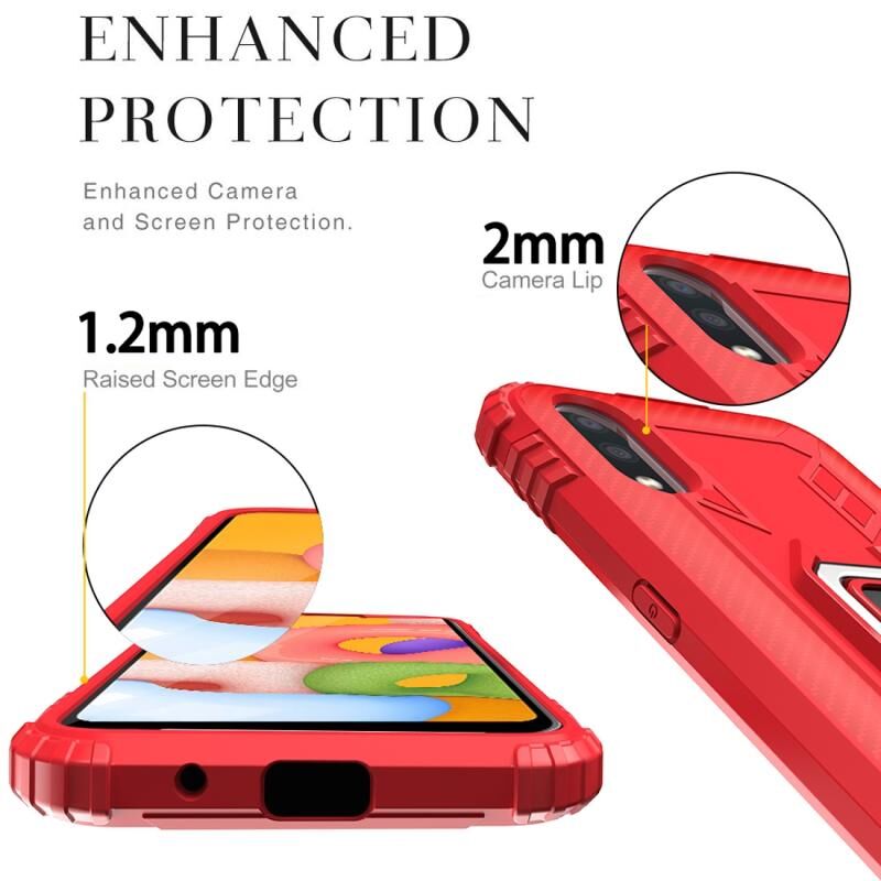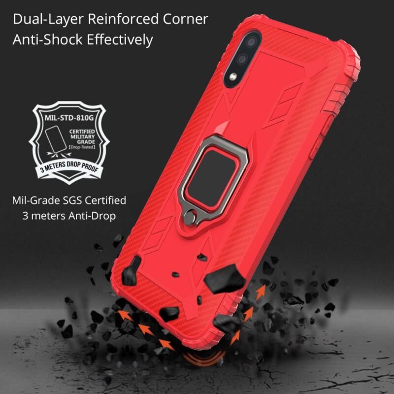 Για Galaxy A01 (Ευρωπαϊκή έκδοση) Carbon Fiber Προστατευτική θήκη με 360 μοίρες περιστρεφόμενο δαχτυλίδι κάτοχος (κόκκινο)