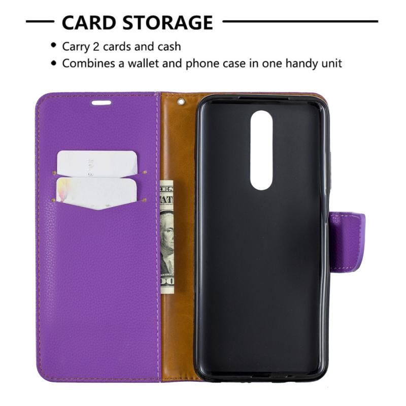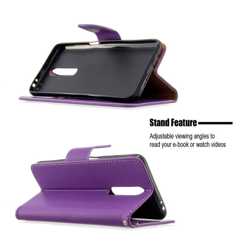 Για Galaxy A01 Litchi υφή καθαρό χρώμα οριζόντια Flip PU δέρμα υπόθεση με κάτοχο & υποδοχές για κάρτες & πορτοφόλι & κορδόνι (Μωβ)