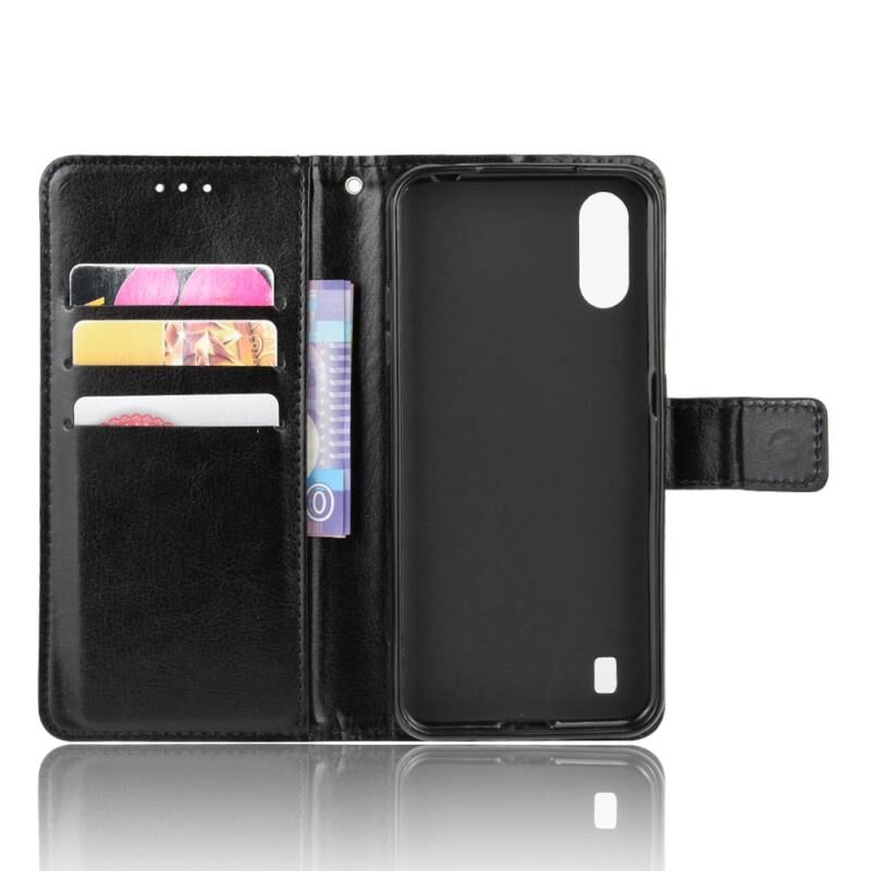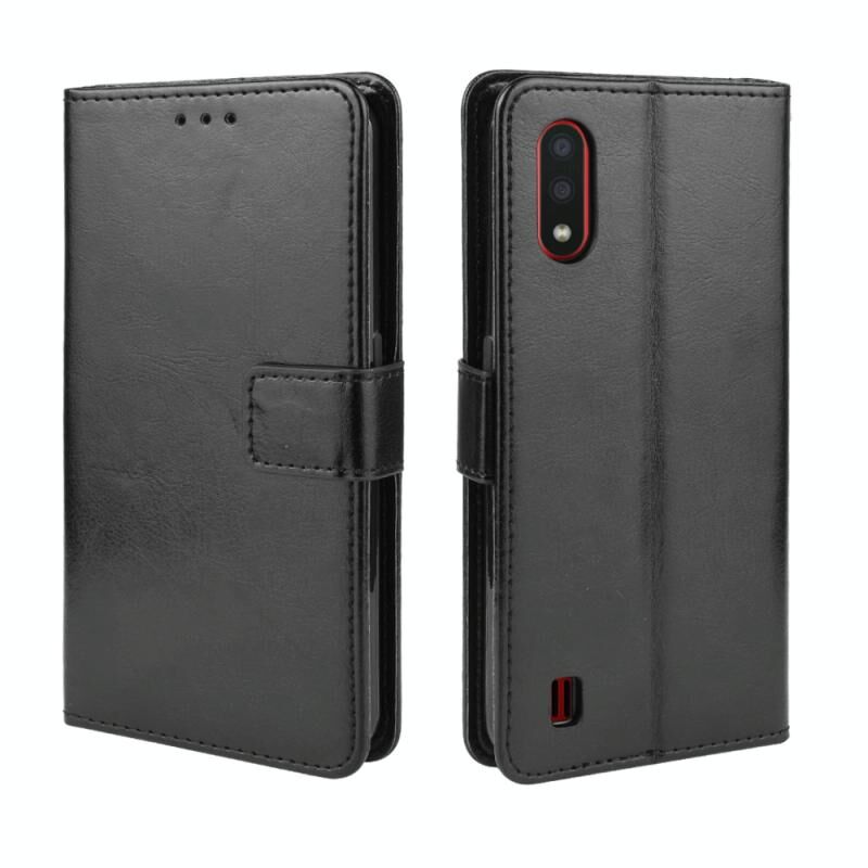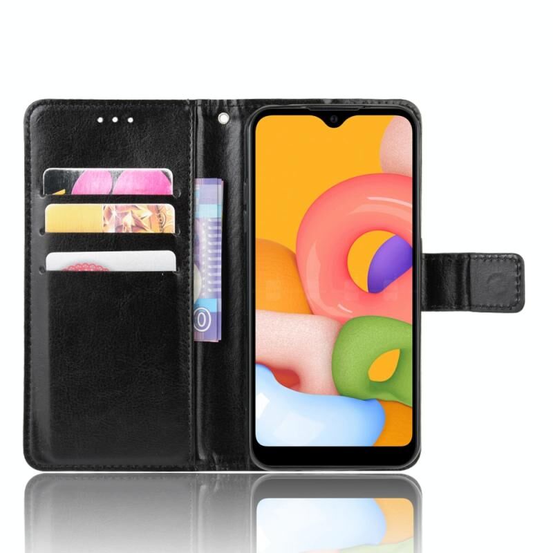 Για Galaxy A01 Ρετρό Crazy Horse Υφή οριζόντια Flip δερμάτινη θήκη με θήκη & υποδοχές καρτών & πλαίσιο φωτογραφιών (Μαύρο)